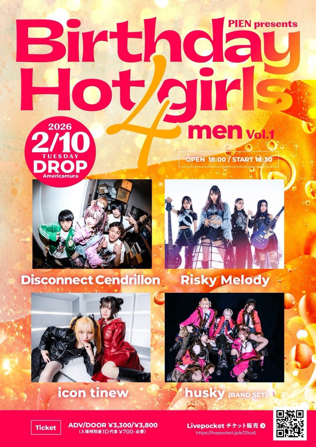 ADV/DOOR ¥3,300/¥3,800(入場時別途1D代金¥700-)