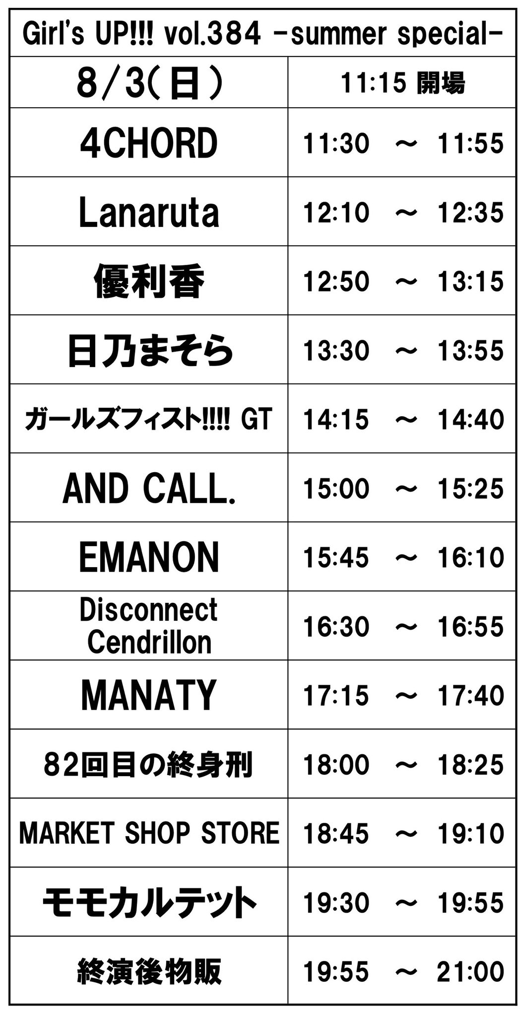開場 11:00 開演 11:30