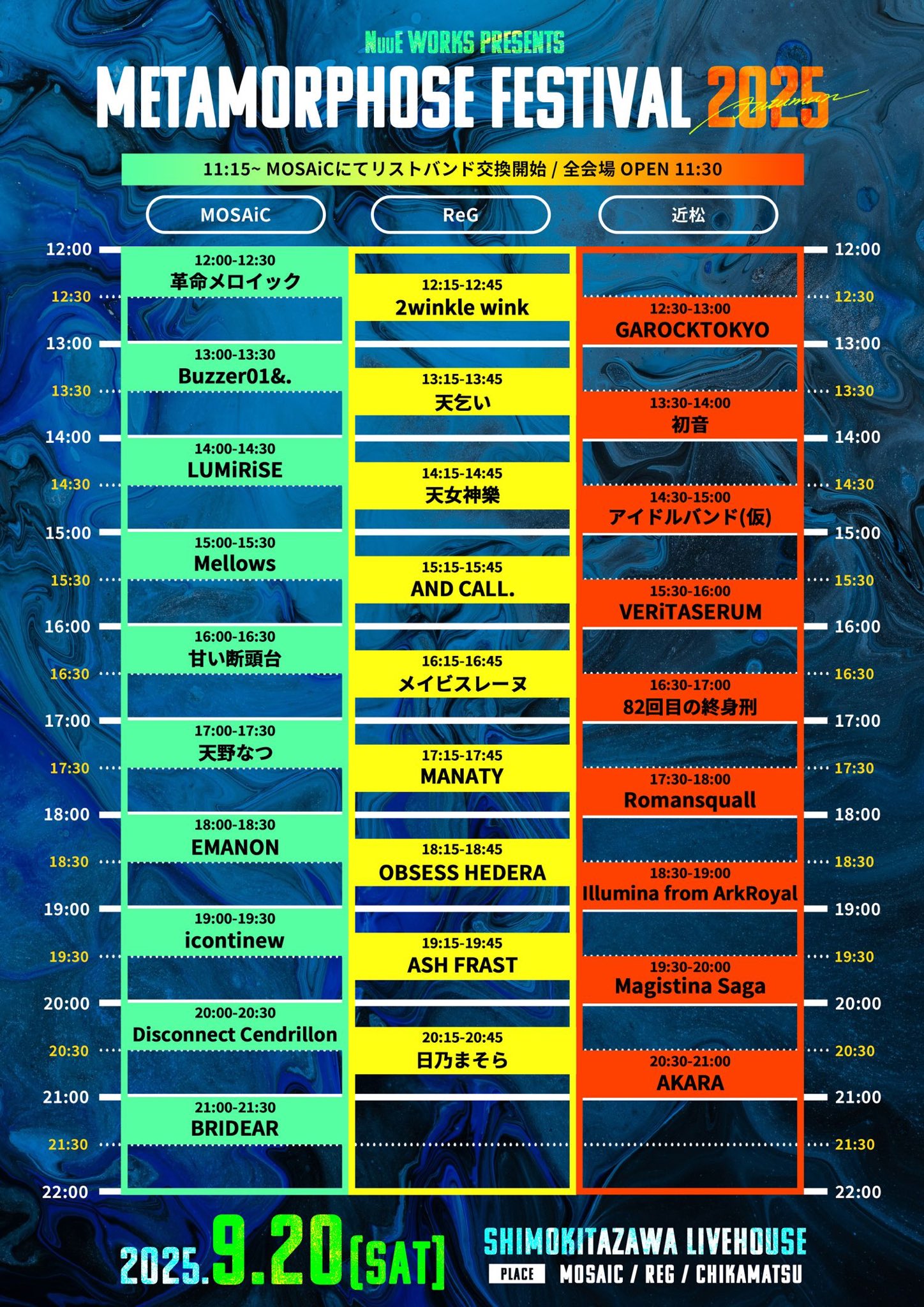 ASH FRAST , BRIDEAR , LUMiRiSE , 甘い断頭台 , 革命メロイック , Mellows , AKARA , OBSESS HEDERA , icontinew , 初音 , 天女神樂 , 日乃まそら , メイビスレーヌ , AND CALL. , 天野なつ , Buzzer01&. , MANATY , Illumina from ArkRoyal , 82回目の終身刑 , Magistina Saga , Romansquall , EMANON , 天乞い , 2winkle wink , アイドルバンド(仮) , Disconnect Cendrillon , VERiTASERUM , ギャロックトーキョー
